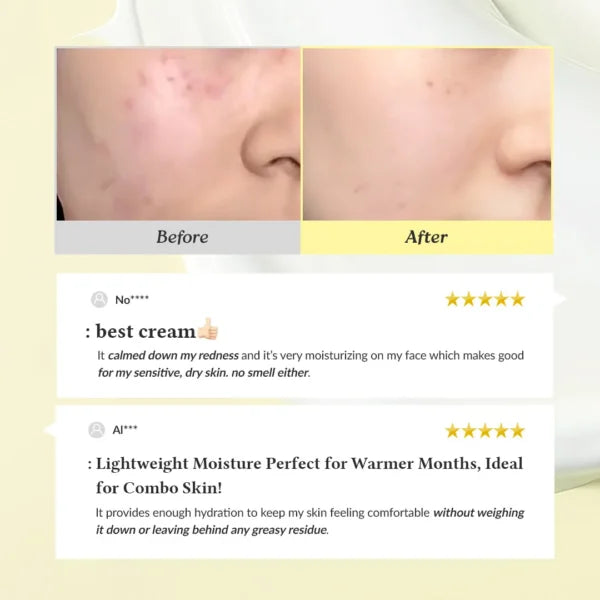 This cream is a gentle and natural skincare option, free from artificial colors and fragrances, making it ideal for sensitive skin. It provides a silky, non-greasy, and refreshing feel due to moisturizing oils, and it’s both vegan-certified and EWG Green Grade-rated, emphasizing its commitment to environmental and skin safety standards.