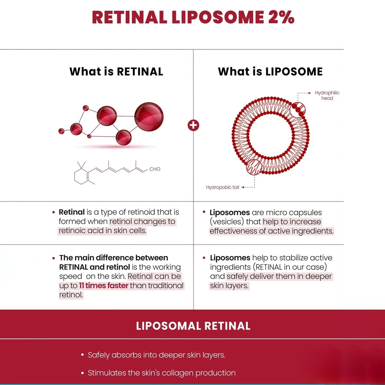 Fights fine lines, wrinkles, uneven texture, and sagging skin with 2% Retinal Liposome—known to be more potent and less irritating than retinol, making it ideal for sensitive skin. -