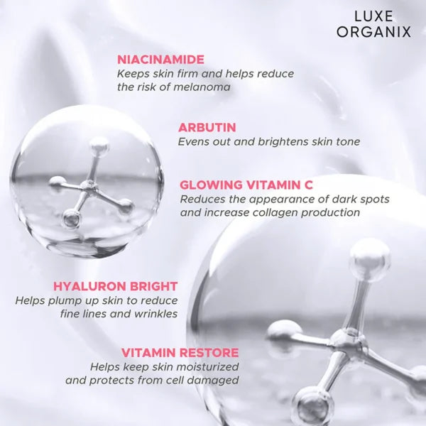 Luxe Organix Niacinamide + Arbutin Healthy Light Whitening Serum Lotion features a lightweight, non-sticky, and moisturizing formula that helps brighten the skin to restore a naturally radiant complexion. Infused with Niacinamide and Alpha Arbutin to help lighten and improve the appearance of skin for a smooth and flawless glow. With added benefits from Vitamin C, Hyaluronic Acid, and Vitamin E to revitalize dull-looking skin while strengthening the skin barrier. Indulge your skin with this concentrated serum-lotion hybrid that helps provide long-lasting moisture by penetrating deeply into the skin, leaving you with brighter, softer and smoother skin.