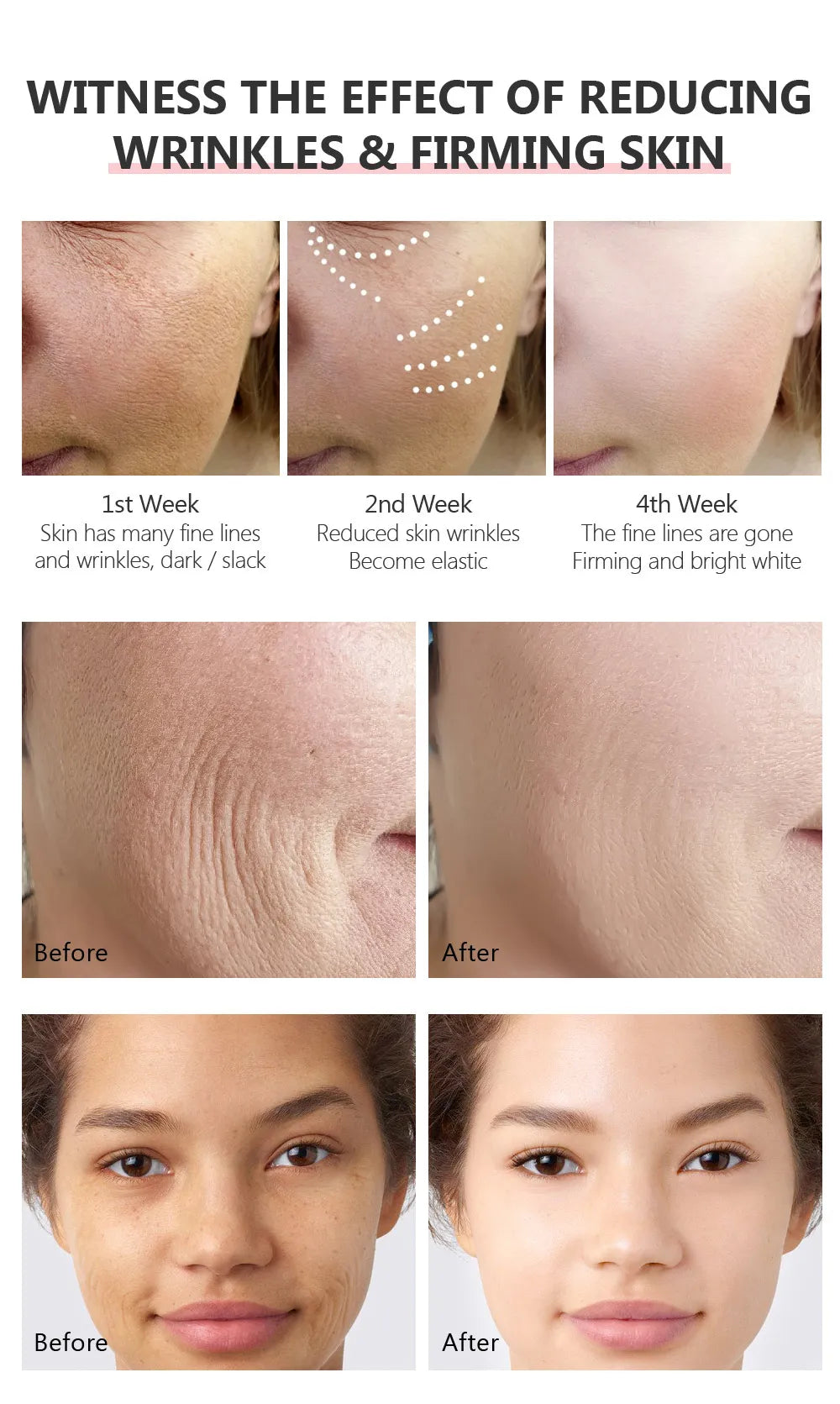 Double Retinol, clear superoxide free radicals, can not only reverse photoaging, accelerate skin self-renewal, inhibit the formation of wrinkles, promote collagen synthesis, fade fine lines, help the corneous layer update and brighten skin tone for delicate and firm skinBalanced formula, Strong to witness the turnover of the skin